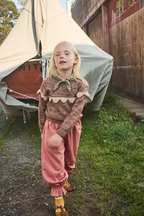 Pamela Sweater, Antique Rose Eyelet Ribbon - Misha&Puff